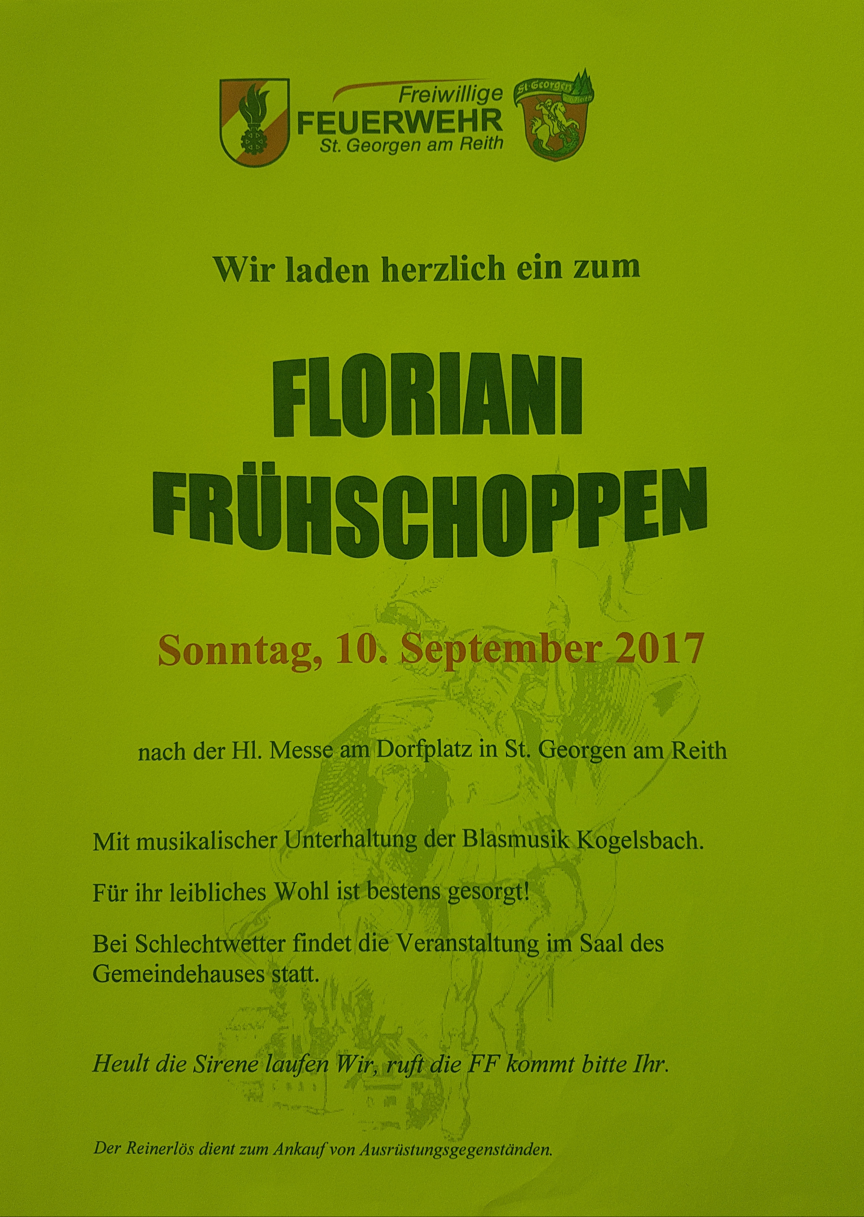 Frühschoppen 2017 Veröffentlicht unter Aktuelles 26. August 2017 1 Minute Lesedauer Sonntag, 10. September 2017 nach der Hl. Messe am Dorfplatz in St. Georgen am Reith